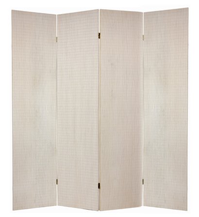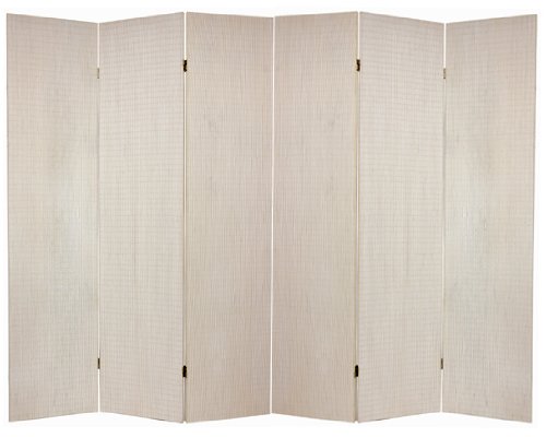 (Note: Honey, Black, & Walnut versions of this screen, in 3, 4, 5, & 6 panels available on Amazon.com!) Choose 3 panel, 4 panel, 5 panel, or 6 panels, simple warm decorative art, as well as a practical, effective room divider floor screen, offered at an exceptionally low price. Constructed from light, hard, durable, kiln dried Spruce, covered with vertical bamboo matchstick, laid side by side so close that light and air don't pass, unlike flimsy paper screens where shadows are visable. Though light & portable, they are particularly solid and sturdy, built to tolerate constant use. The finish is a matte, not glossy white stain, which won't flake like painted bamboo or rattan. Browse our Amazon store for a wide selection of extraordinary Asian & Buddhist art, simple, beautiful, practical home furnishings & lamps, as well as the web's largest selection of room dividers and shoji screens, from 2 ft, to 7 ft, tall, 3, 4, 5, or 6 panels wide! Ships within two business days of your order, professionally packed, fully insured from our Massachussettes warehouse via Fed Ex home delivery, expedited delivery available.