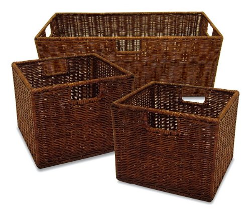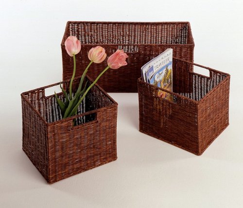 - This set of three wicker baskets, one large and two small, is ideal for use with the espresso wide and narrow storage shelves (WW-92326).